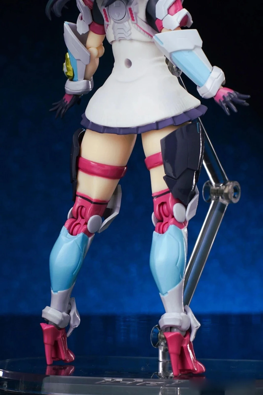 The exposed thighs beneath the ultra-short skirt, paired with the outer armor, create a striking “absolute territory” look. The thigh strap details also cleverly transition around the thigh swivel joint. A subtle glimpse of white undergarments is also part of Rikka’s charm.