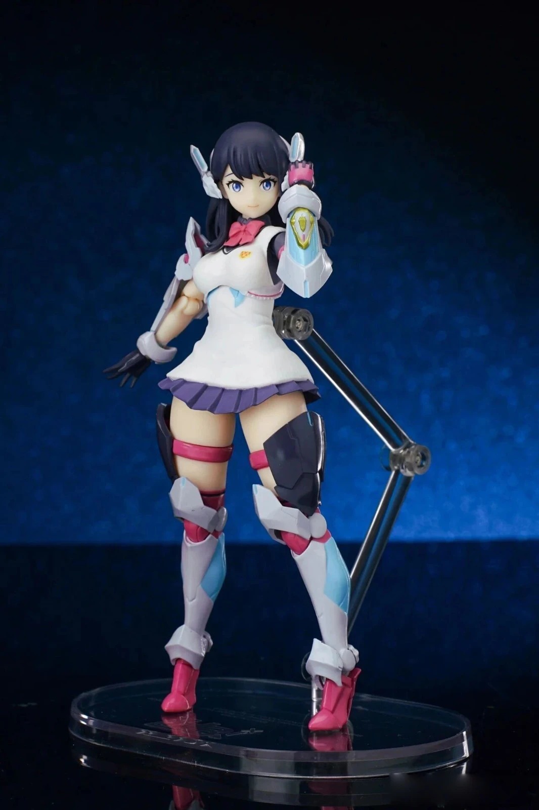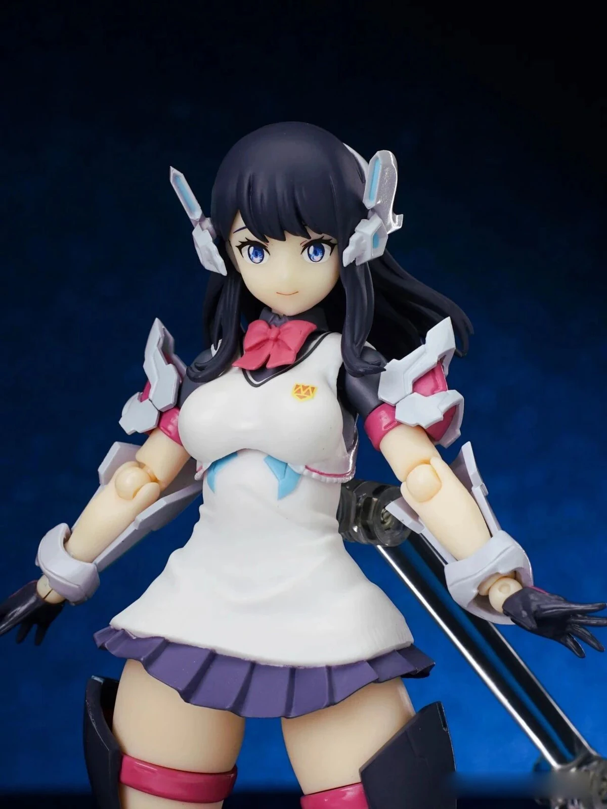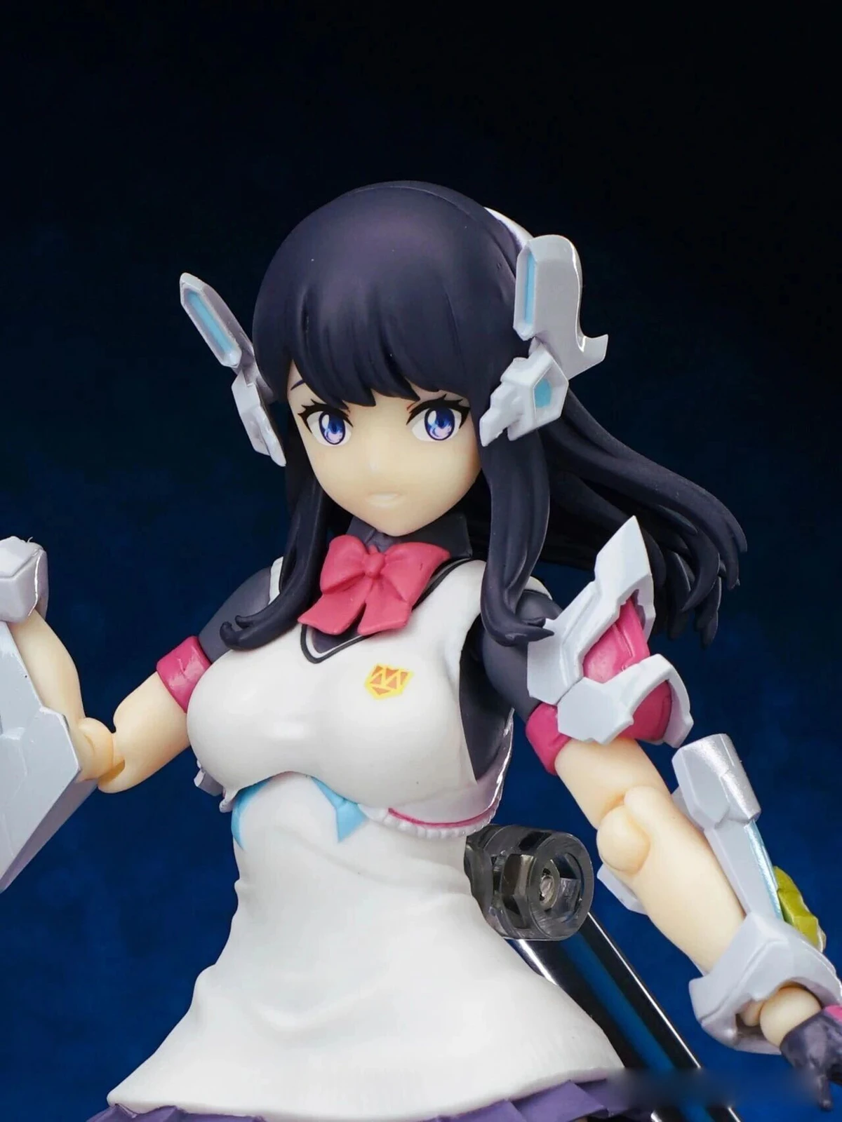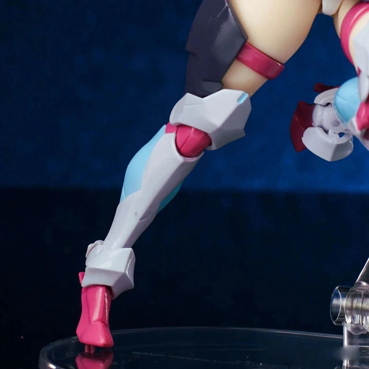 The figure stands approximately 15 cm tall. The design combines Rikka’s school uniform appearance from Gridman Universe with armor elements inspired by “Hyper Agent Gridman.” Additional outer armor has been added to the limbs, while the headset-like headpiece is derived from Gridman’s crest.