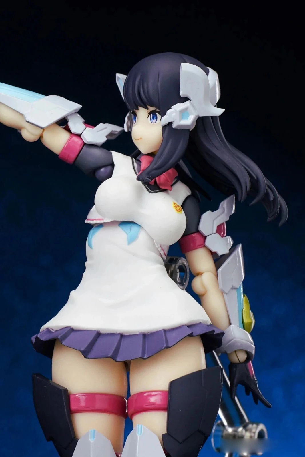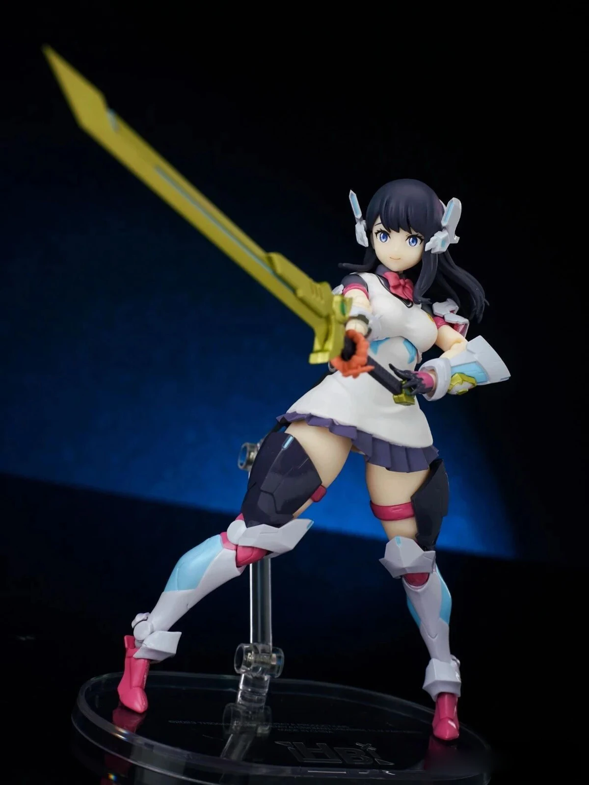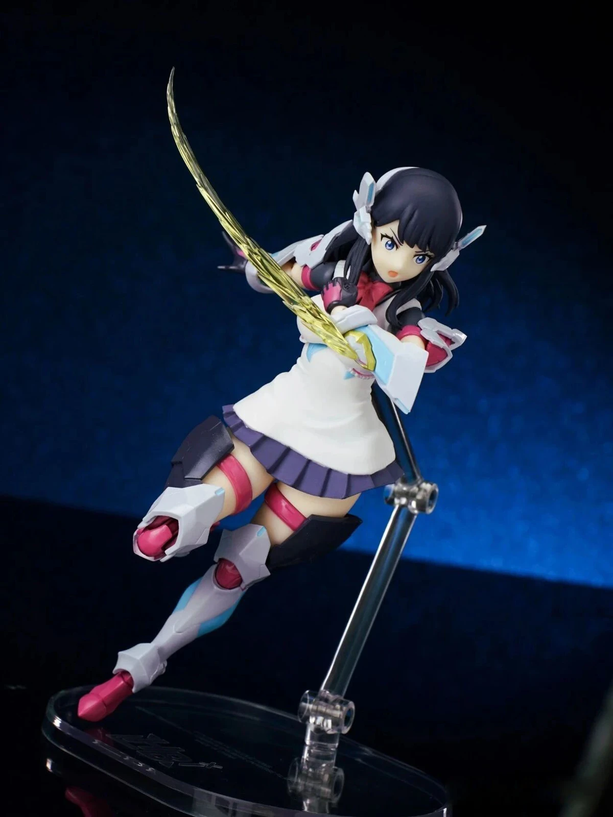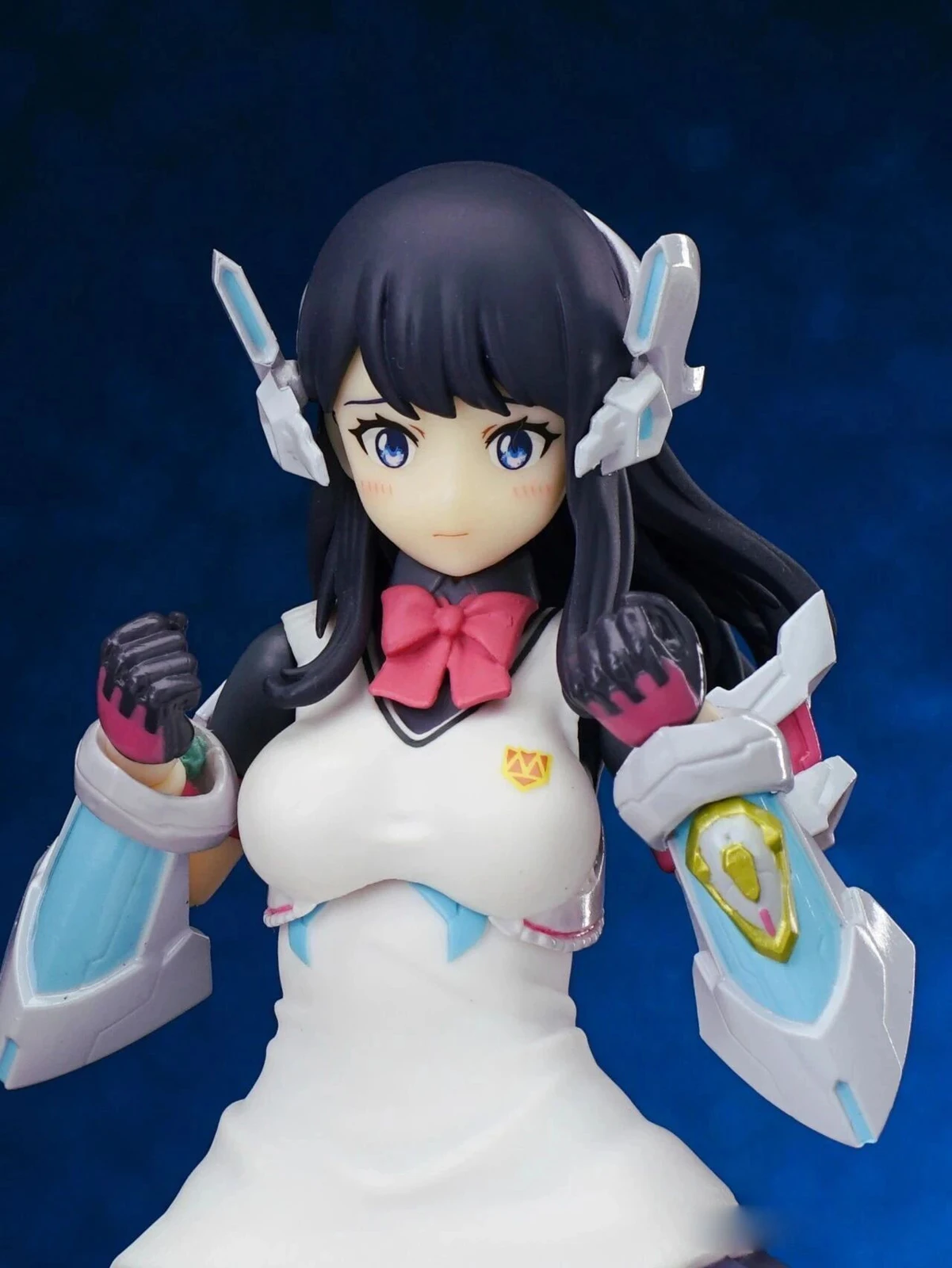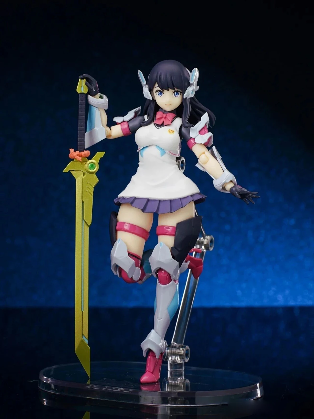 The figure stands approximately 15 cm tall. The design combines Rikka’s school uniform appearance from Gridman Universe with armor elements inspired by “Hyper Agent Gridman.” Additional outer armor has been added to the limbs, while the headset-like headpiece is derived from Gridman’s crest.