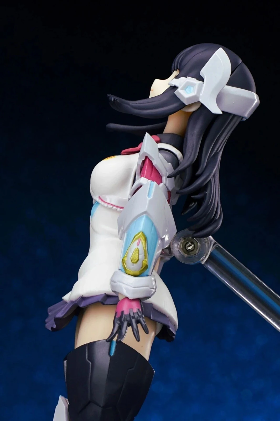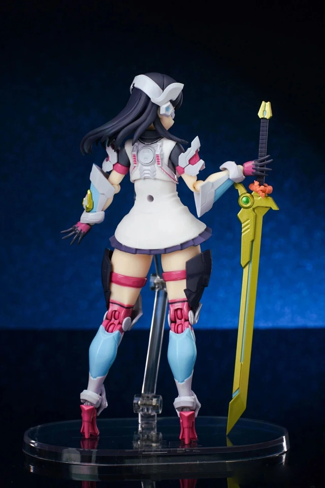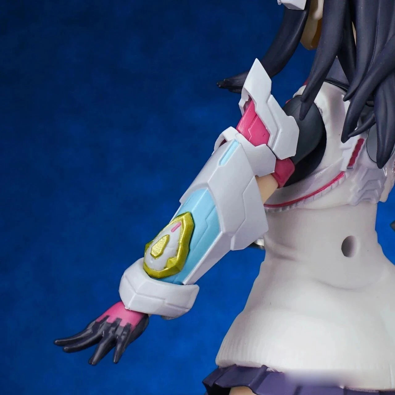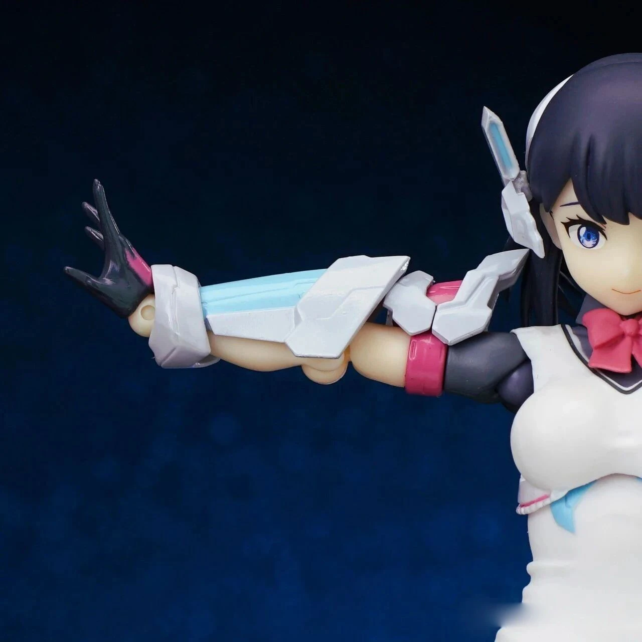 The figure stands approximately 15 cm tall. The design combines Rikka’s school uniform appearance from Gridman Universe with armor elements inspired by “Hyper Agent Gridman.” Additional outer armor has been added to the limbs, while the headset-like headpiece is derived from Gridman’s crest.