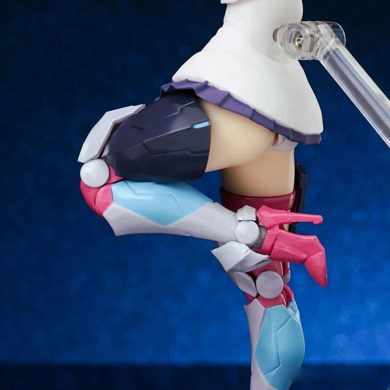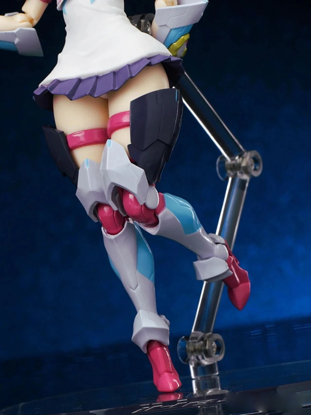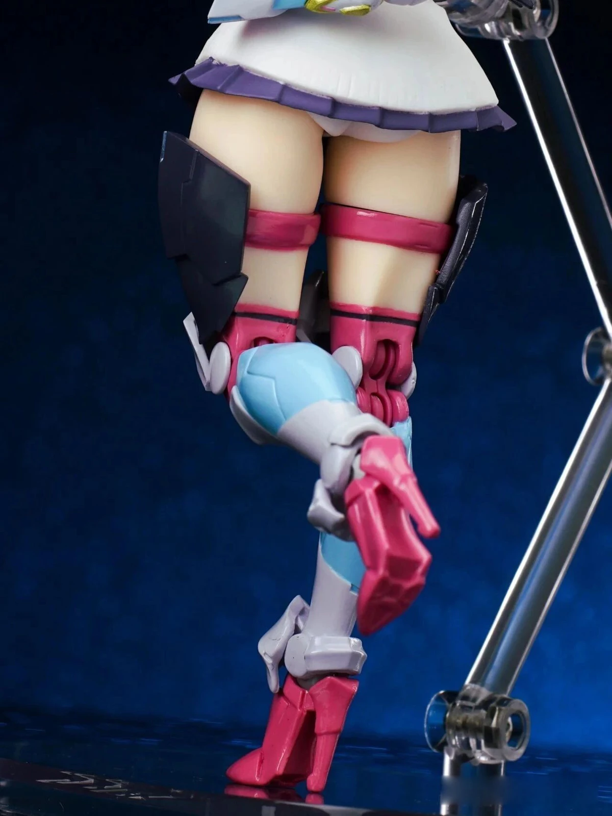 The exposed thighs beneath the ultra-short skirt, paired with the outer armor, create a striking “absolute territory” look. The thigh strap details also cleverly transition around the thigh swivel joint. A subtle glimpse of white undergarments is also part of Rikka’s charm.